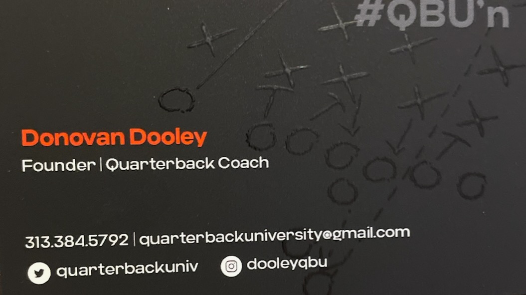 Donovan Dooley is a Detroit-Bred “QB Guru” with over 25 years of experience at the Quarterback position. According to Bleacher Report, Coach Donovan Dooley was recognized as the 9th best Quarterback Coach in the country. His love and passion for the game of football led him to found Quarterback University in 2011. QBU is well known for teaching the entire Quarterback Discipline; including but not limited to: Pocket Navigation, Throwing Mechanics, Cerebral Acumen and Situational Awareness. Since its inception, QBU has had over 200 Student-Athletes go on to receive various scholarships to attend colleges and universities all over the country.