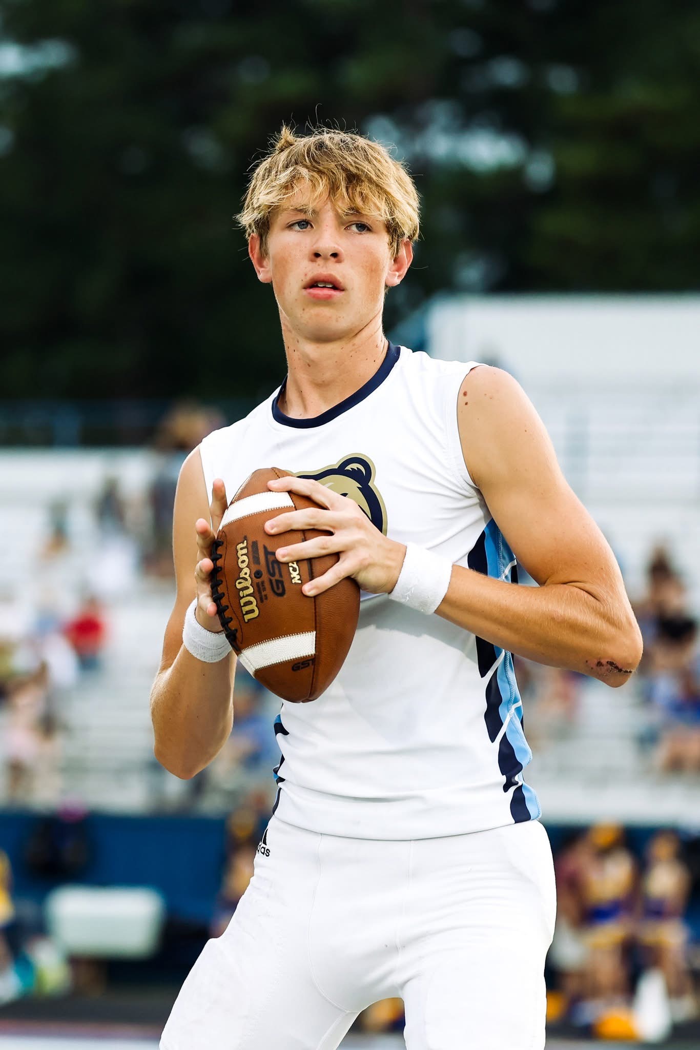 I trust God first in all I do. I play multiple sports and really only started playing football seriously three years ago, and now going into my fourth year next season. I always played travel soccer until we moved to Arkansas, but we didn't have middle school soccer at my school so I decided to focus just on football and golf, which I started around covid. I just completed my second season in Arkansas as the starting QB for the Pulaski Academy Bruins 9th-grade team.